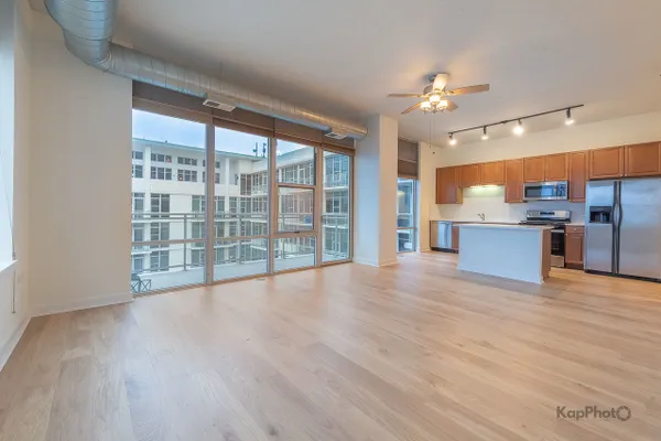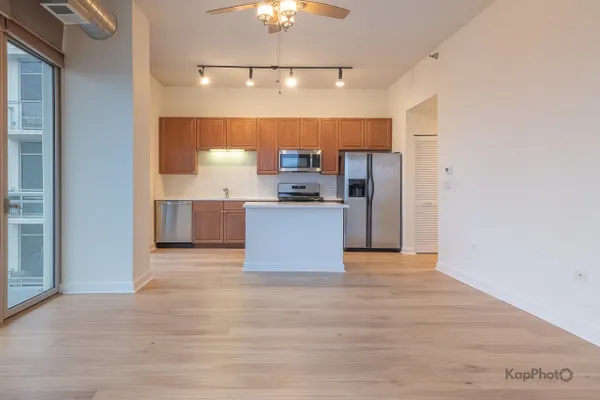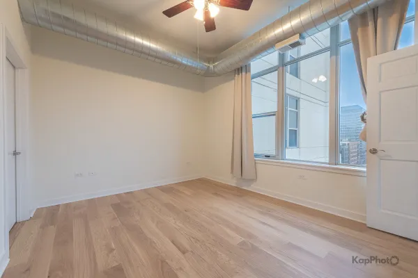 Bright and sunny southwest corner 1 bed/1 bath in high amenity building overlooking Mary Bartelme Park. Entirely freshly painted, this unit is appointed with BRAND NEW hardwood floors throughout, big windows, large balcony, in-unit washer/dryer, and custom window treatments. Kitchen features 42" cabinets, BRAND NEW Quartz countertops, Quartz backsplash, island with overhang, and stainless steel appliances. Large bedroom with ample closets and large windows with direct view of Mary Bartelme Park. Amenities include lobby, door staff, 4th floor courtyard, fitness center, rec room with kitchen, lounge, pool table, and sun deck. Prime indoor parking space available for an additional $30,000. Storage cage and bike storage included. Amazing location on Madison Row and steps to Mary Bartelme Park, Whole Foods, Mariano's, restaurants, shops, public transportation, Greektown, and the Fulton Market District.