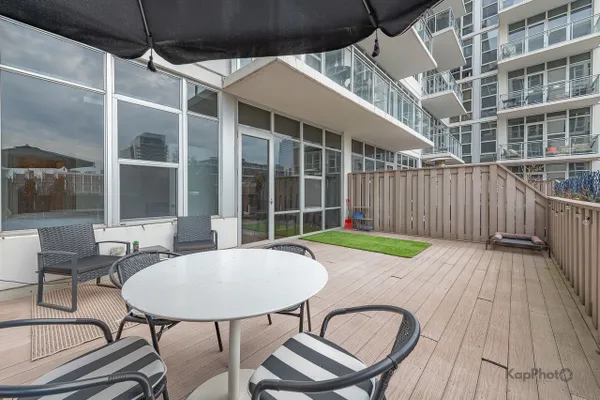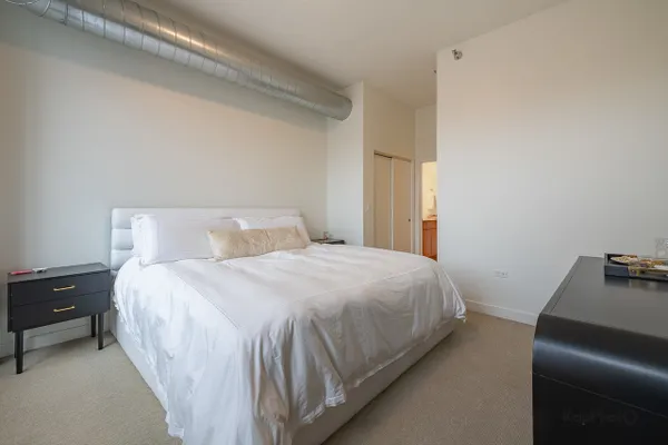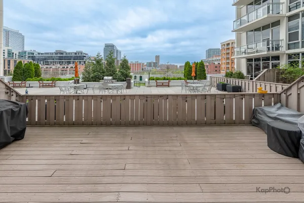 Spacious and pristine south facing 1 bed/1 bath with huge private terrace and best parking space in high amenity building and outstanding West Loop location. Exceptional bright and recently painted, this unit is appointed with hardwood floors, tall ceilings, large windows, and in-unit washer/dryer. Kitchen features plenty of cabinet space, stainless steel appliances, granite countertops, and large island. Fully enclosed bedroom with access to bathroom that also serves as a powder room. Highly inclusive monthly assessment includes heat, gas, internet, and water. Amenities include door staff, gym, 4th floor courtyard, dog run, top floor sundeck, recreation/party room, storage cage, and bike storage. Prime heated end parking space an additional $35,000. Situated on Madison Row only a block to Mary Bartelme Park and steps to Whole Foods, Mariano's, shops, restaurants, the loop, public transportation, Greektown, and the Fulton Market District.