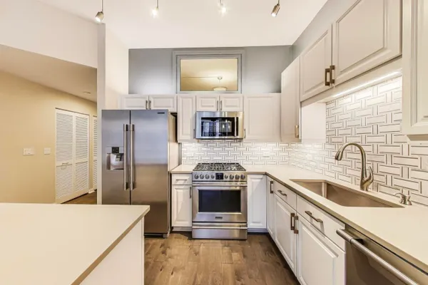 Experience luxury living in one of the West Loop's most sought-after buildings in this fully renovated 2 Bed / 2 Bath + Den, offering 1,450 sq. ft. of sophisticated city living. Floor-to-ceiling windows showcase East-facing city views, and spacious rooms and thoughtful updates throughout create an inviting space for entertaining. The modern kitchen opens to the living area, boasting classic white cabinetry, quartz countertops, stainless steel appliances, and a stylish backsplash. The generous primary suite features a custom walk-in closet and a newer, spa-like bath with a soaking tub, dual vanity, and separate, over-sized shower. The private balcony opens from both the primary and living room, creating a flexible outdoor retreat. A versatile den-complete with a built-in Murphy bed-provides the perfect option for a home office, guest room, or smaller third bedroom. Additional recent updates include newer flooring, newer appliances, including washer/dryer, and updated HVAC. Building amenities elevate the lifestyle with a state-of-the-art fitness center, party room, rooftop/sun deck, bike room, secure package room and attentive door staff. Residents also enjoy a landscaped terrace with outdoor seating, grilling stations, and a dog run. Ideally located just steps from Randolph's Restaurant Row, Fulton Market, Mary Bartelme Park, SOHO House, Whole Foods, art galleries, and nightlife, with convenient access to CTA, expressways, Union Station, and Ogilvie. Situated in the coveted Skinner School District. Storage locker included and deeded garage parking available for $30,000. Pet friendly!
